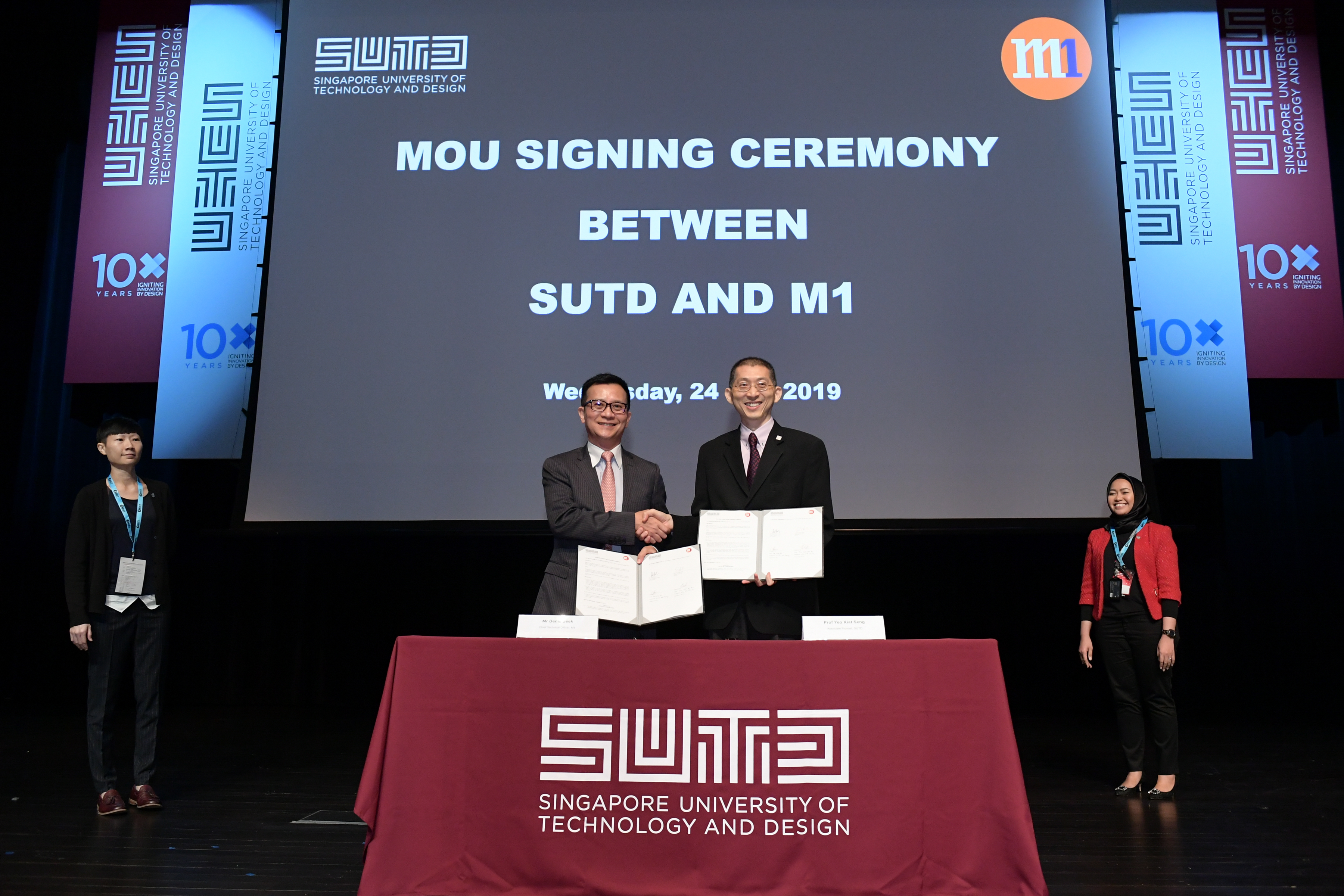 SINGAPORE, 24 JULY 2019 – M1 Limited (M1) and Singapore University of Technology and Design (SUTD) today signed a memorandum of understanding (MOU) to embark on a joint research partnership around remote operation of tactile robots using 5G technology, further supporting Singapore’s Smart Nation transformation journey. The MOU was signed at SUTD’s annual Fostering Industrial Research Success Together (FIRST) Industry Workshop, where stakeholders from industry, academia and the Government convened to foster collaborative research and deepen industry-academia ties.
