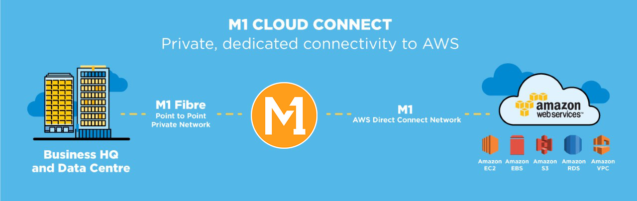 M1 Cloud Connect helps you establish a private, dedicated network between Amazon Web Services (AWS) and your data centre, office or co-location environment. This allows you to enjoy the benefits of a scalable public cloud infrastructure directly with our secure and reliable fibre network.