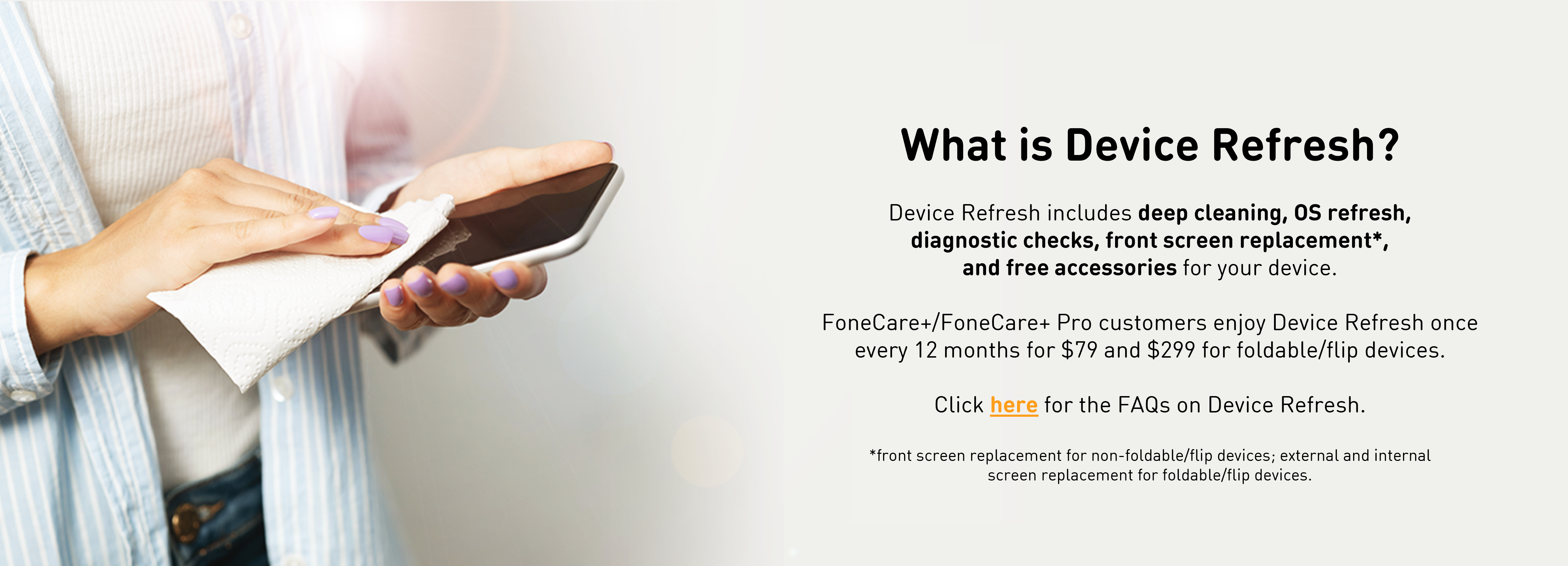 Note: FoneCare+ / FoneCare+ Pro is not applicable for Samsung – Galaxy Fold, Galaxy Z Fold2/3 and HUAWEI – Mate Xs.