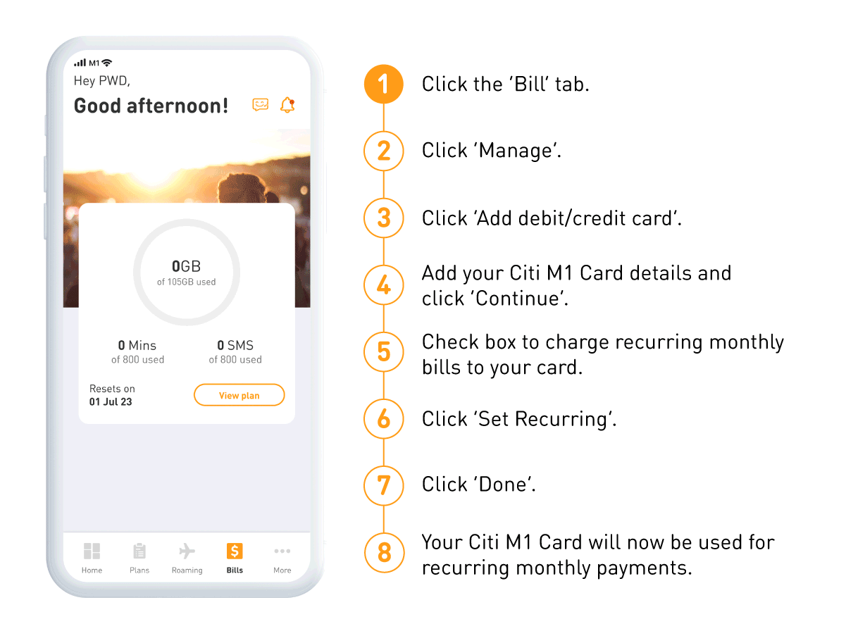 Simply download My M1+ App and follow the steps below to set up M1 Telco Bill via the app!